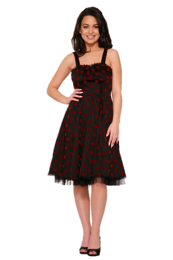 Black & Red Velvet Polka Dot Dress